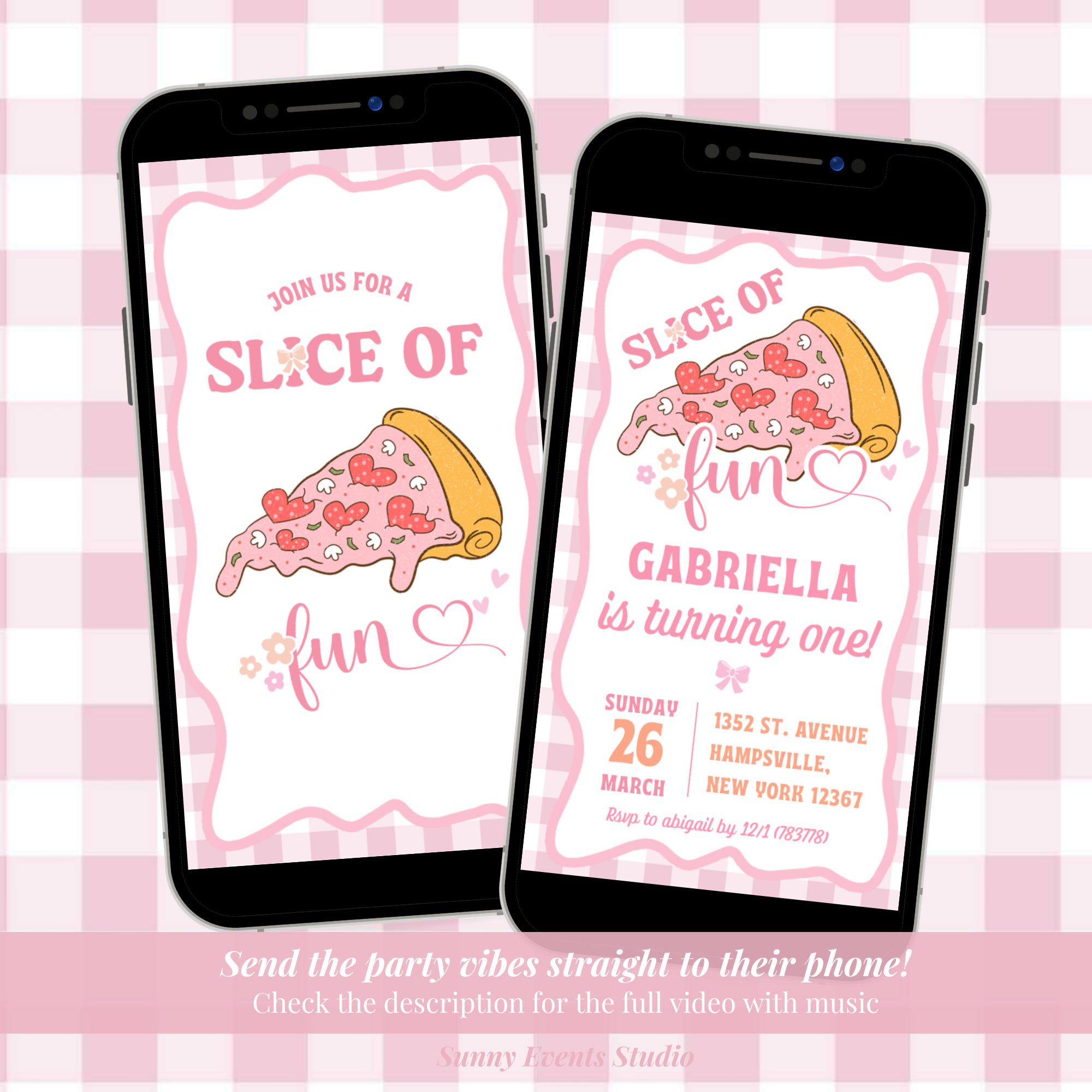 C44 Pastel Retro slice of fun Pizza party % - Yours Digital invite