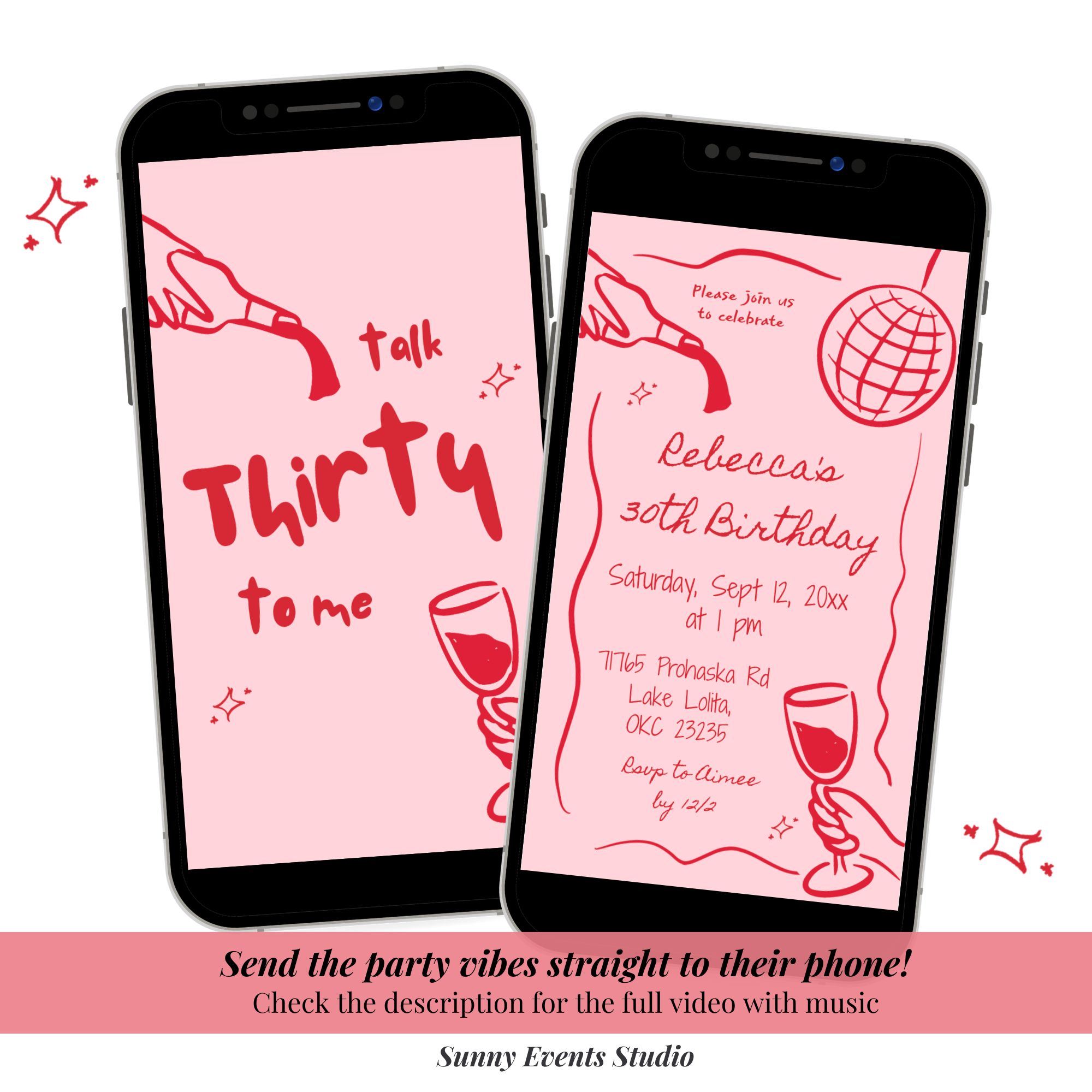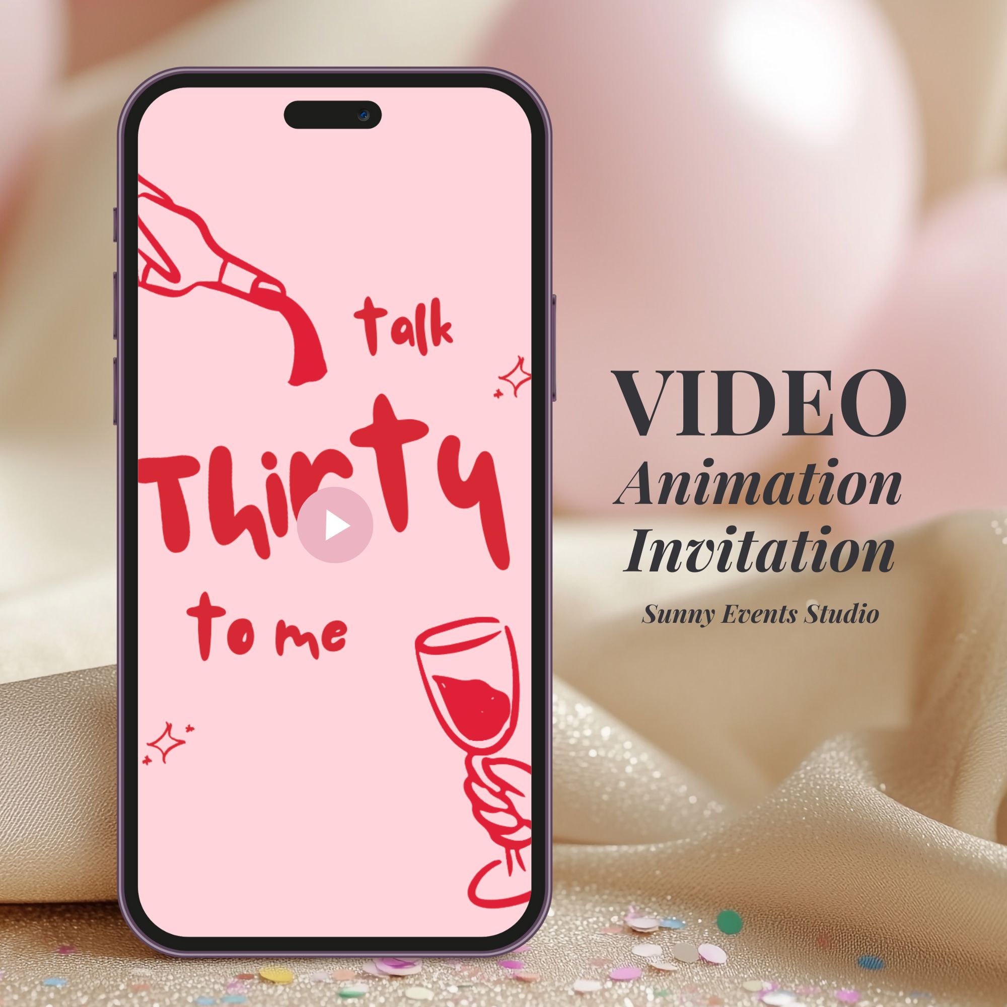 Keywords: Animated Pink and Red Retro Vintage Cheers Adult Birthday Video Invitation, Talk Thirty Hot Pink Thirtieth Birthday Animated Invitation
